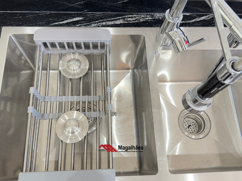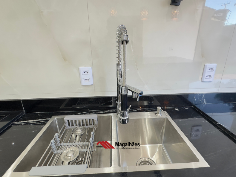 * Ilha e balcão revestidos na exclusiva pedra Via-Láctea