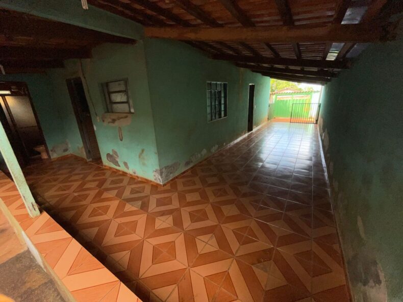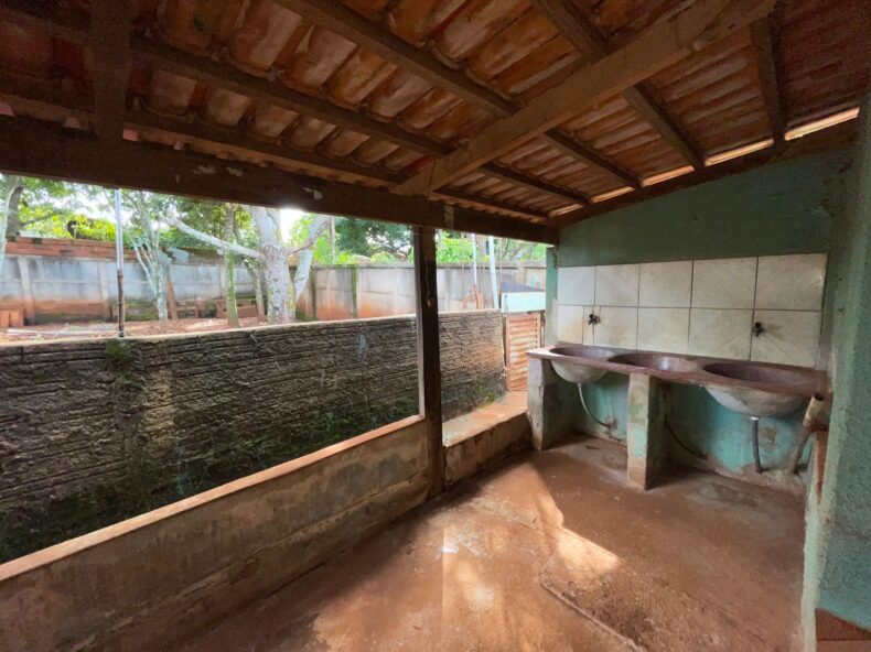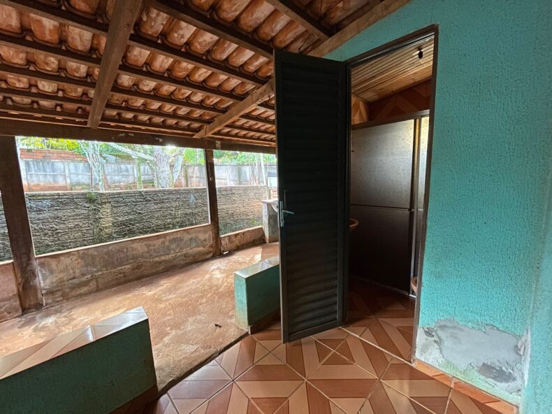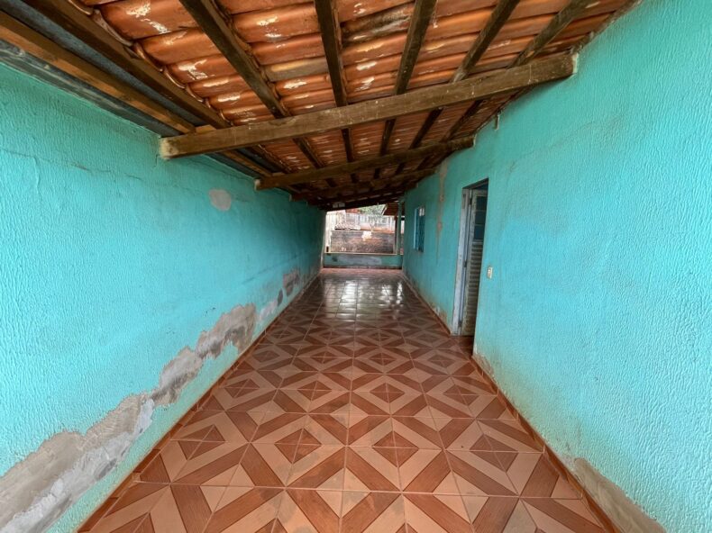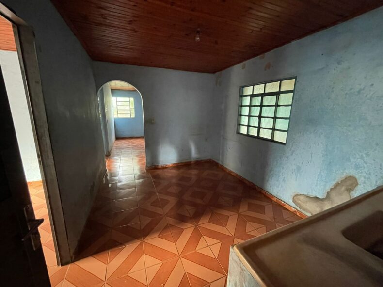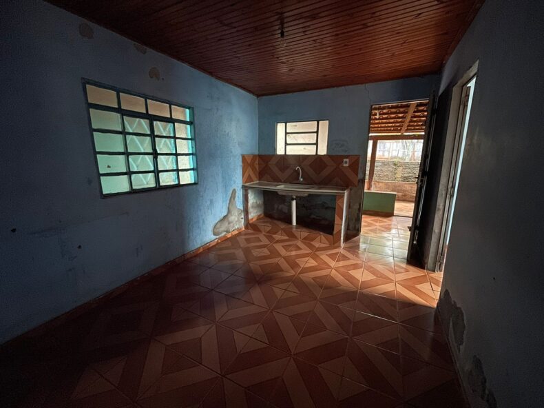 Casa com 02 quartos 01 banheiro social 01 banheiro externo 01 sala, 01 cozinha 01 área de serviço Toda na cerâmica Forro de madeira