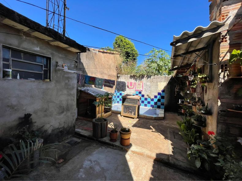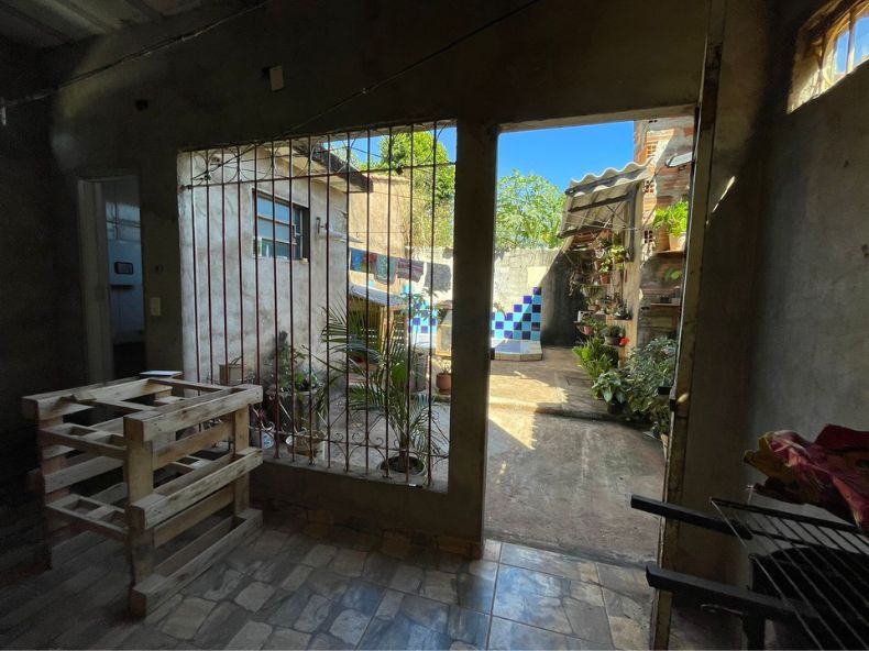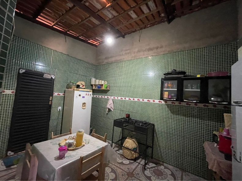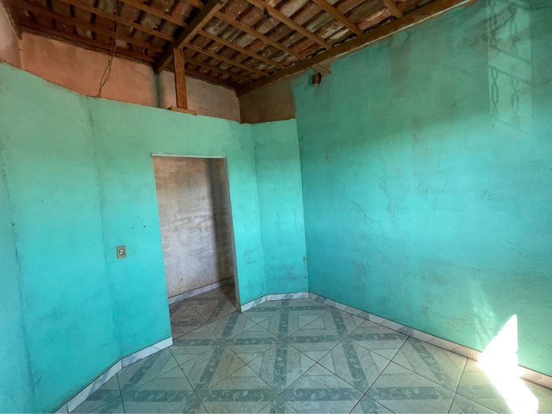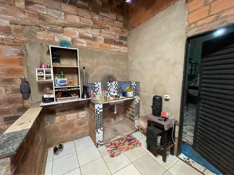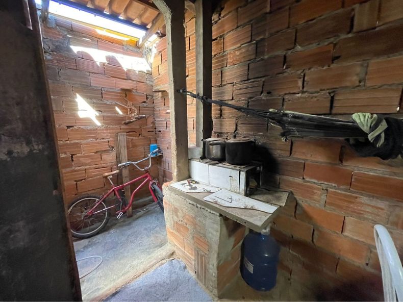 A casa contem 02 quartos, 01 banheiro social, 01 sala, 01 cozinha, 01 área de serviço, 01 garagem e 01 fogão a lenha.